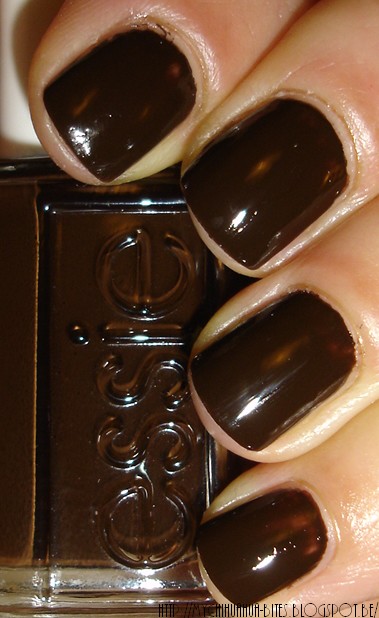 C'est une jolie laque brune foncée, quasi noire en réalité.